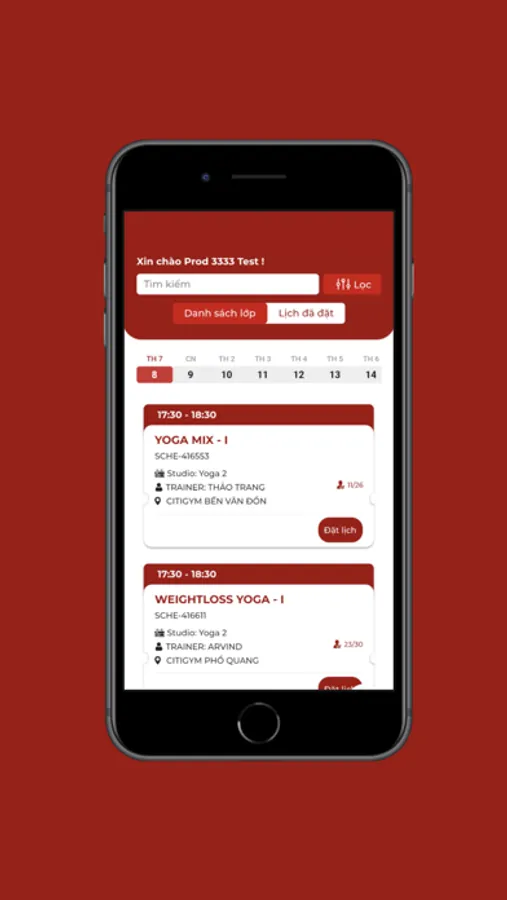 - Bước 3: Tra cứu các lịch tập luyện (Gym, Yoga, Group X, Dance...)