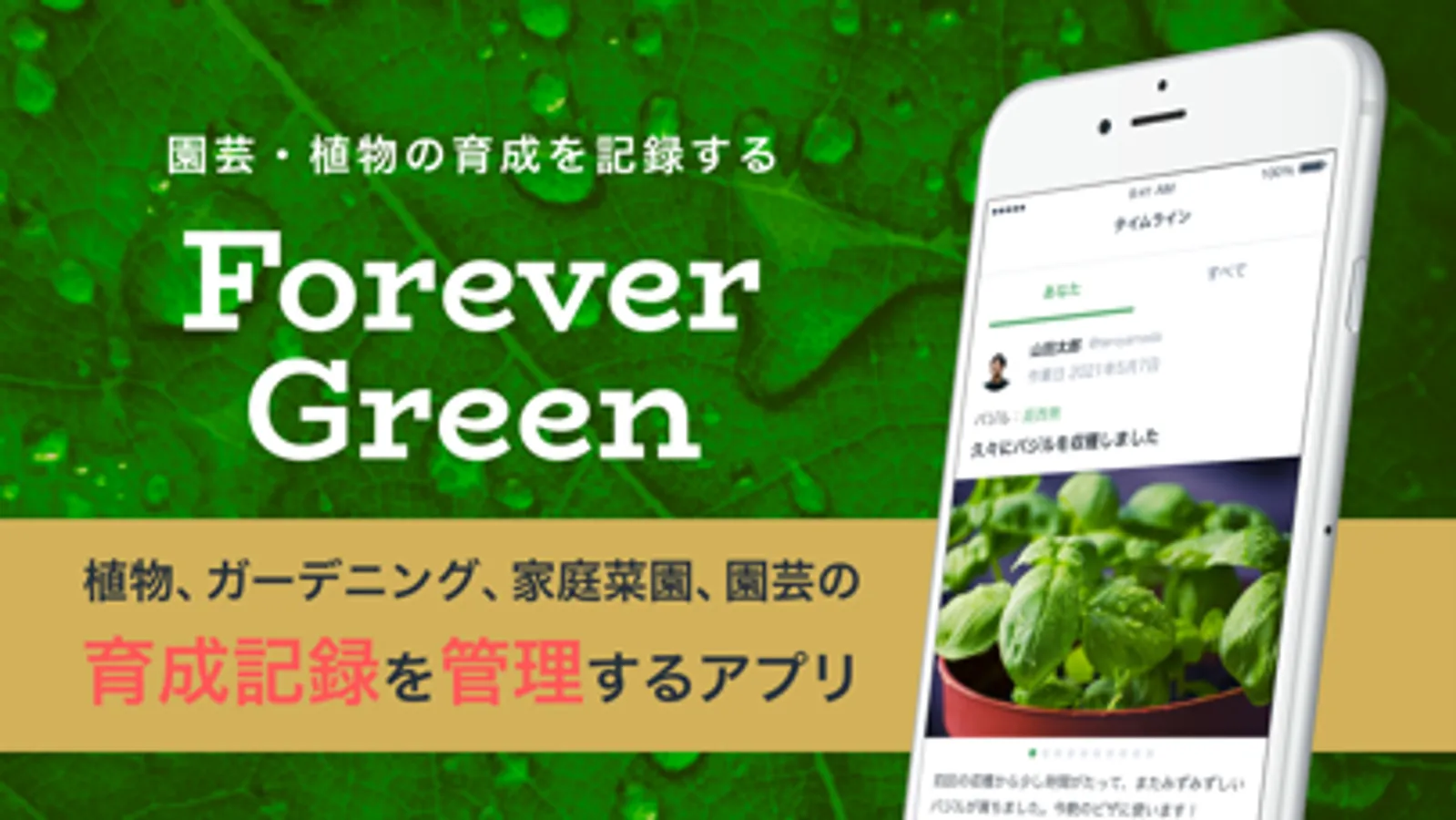 Forever Greenはご家庭の観葉植物や家庭菜園、園芸全般の更新作業や成長の記録をスマホで管理できるアプリです。