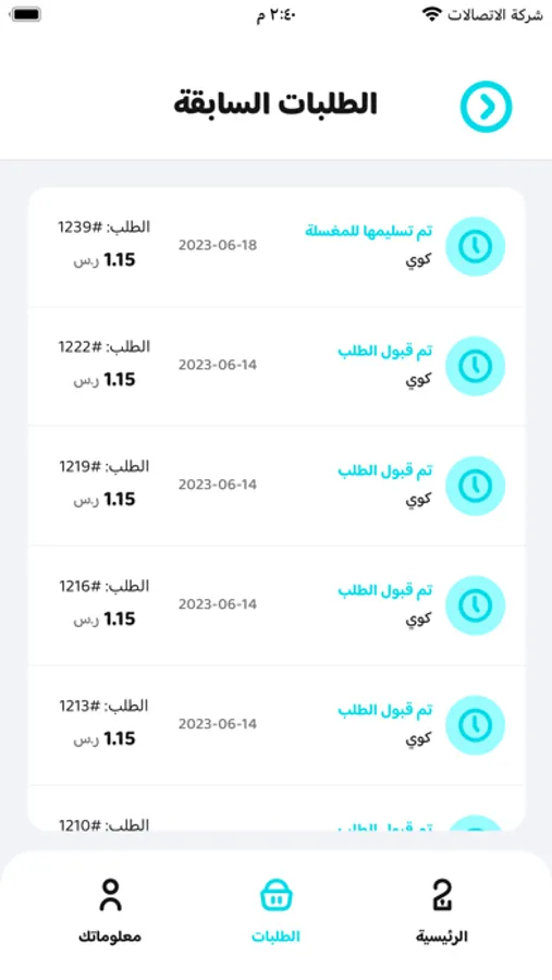 كما يتم اشعار عملائنا بجاهزية الملابس عبر التطبيق بالموعد المحدد دون الحاجة لوجود العميل اثناء التسليم والاستلام.
