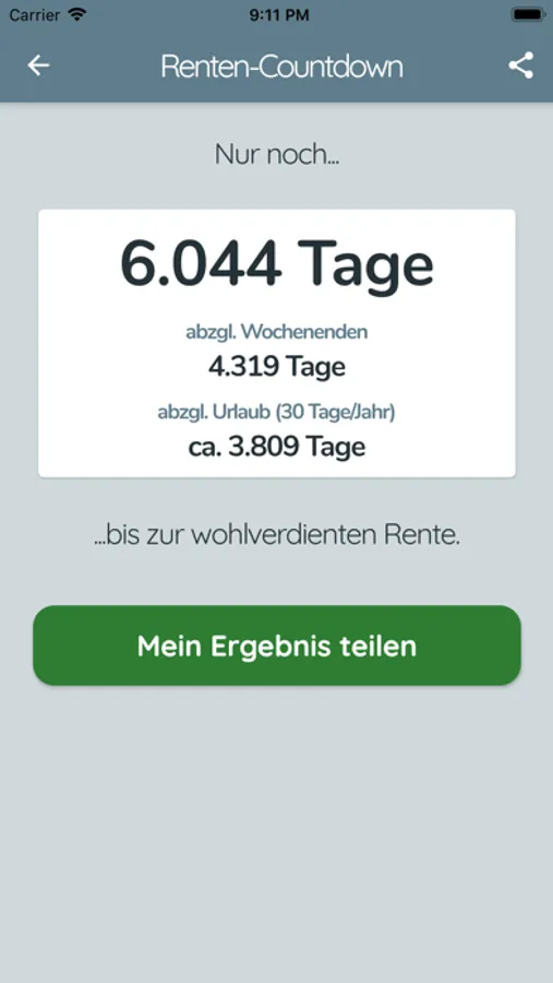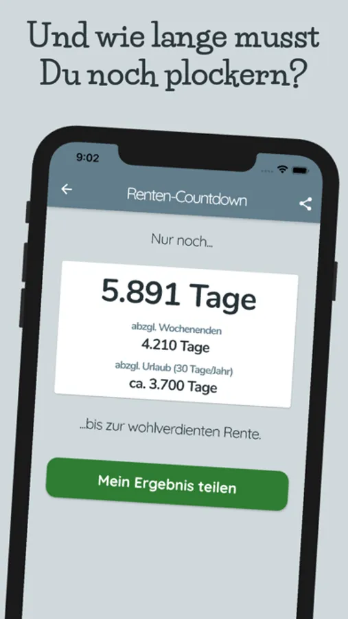Hast Du starke Nerven!? Ja!? Dann nimm den "Renten Countdown" zur Hand und errechne mal wie viele Tage noch vergehen, bis Du die Rente erreichst. Teile Deinen Rest-Tagesstand mit Deinen Freunden.