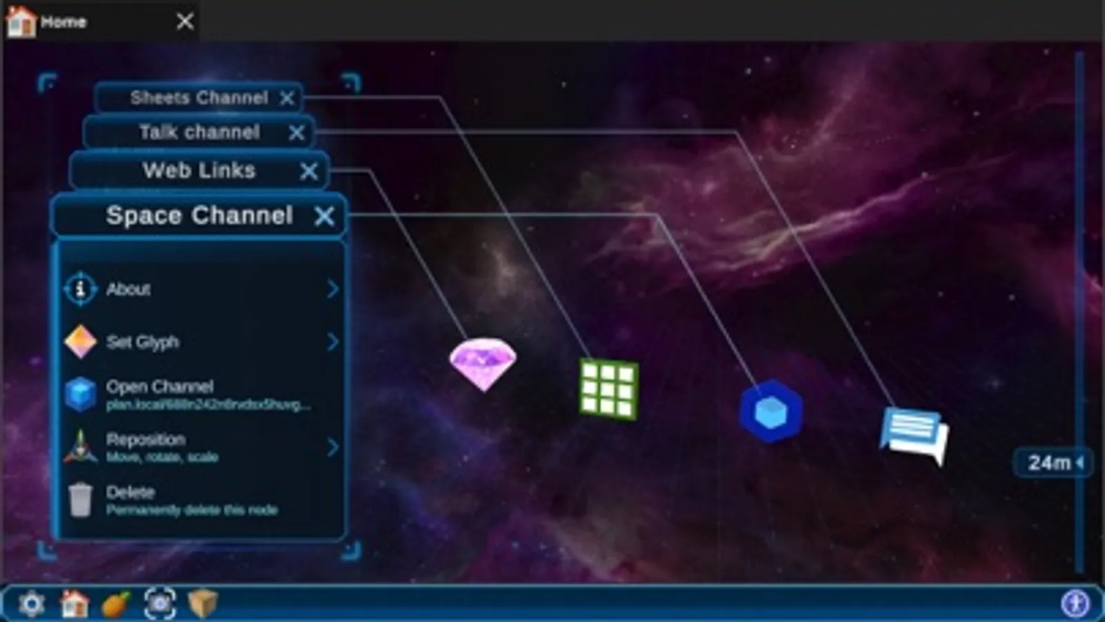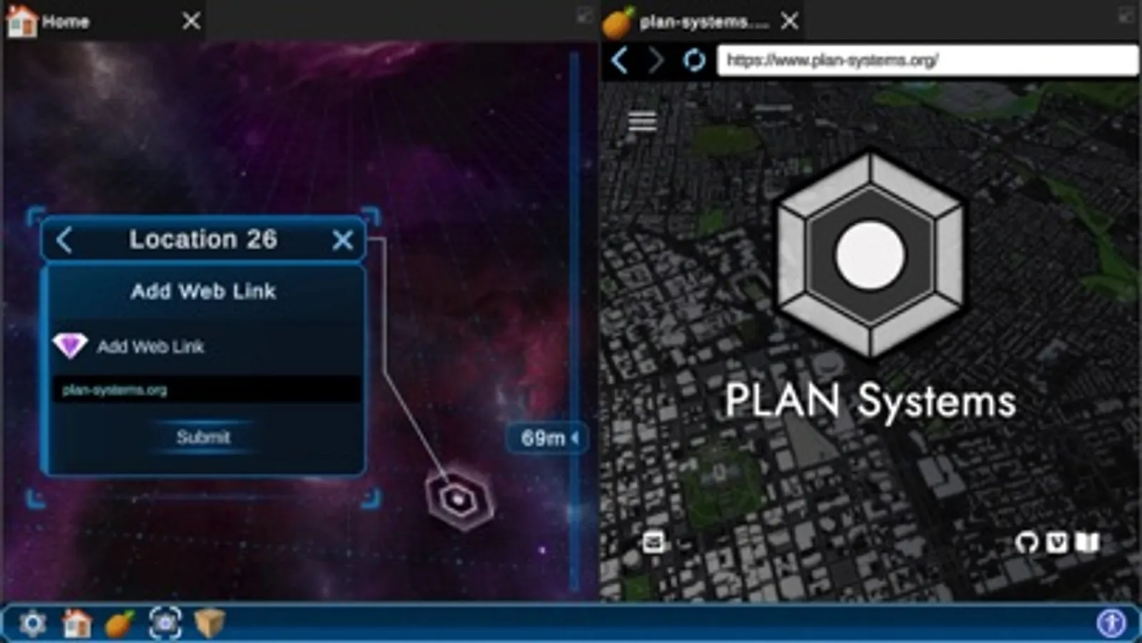 To get started, download 3D content using the crate manager by clicking the crate icon on the system screen and select "get." Learn more about our effort by selecting the System "cog" icon in the launch bar and selecting "PLAN Website" in the visor menu.