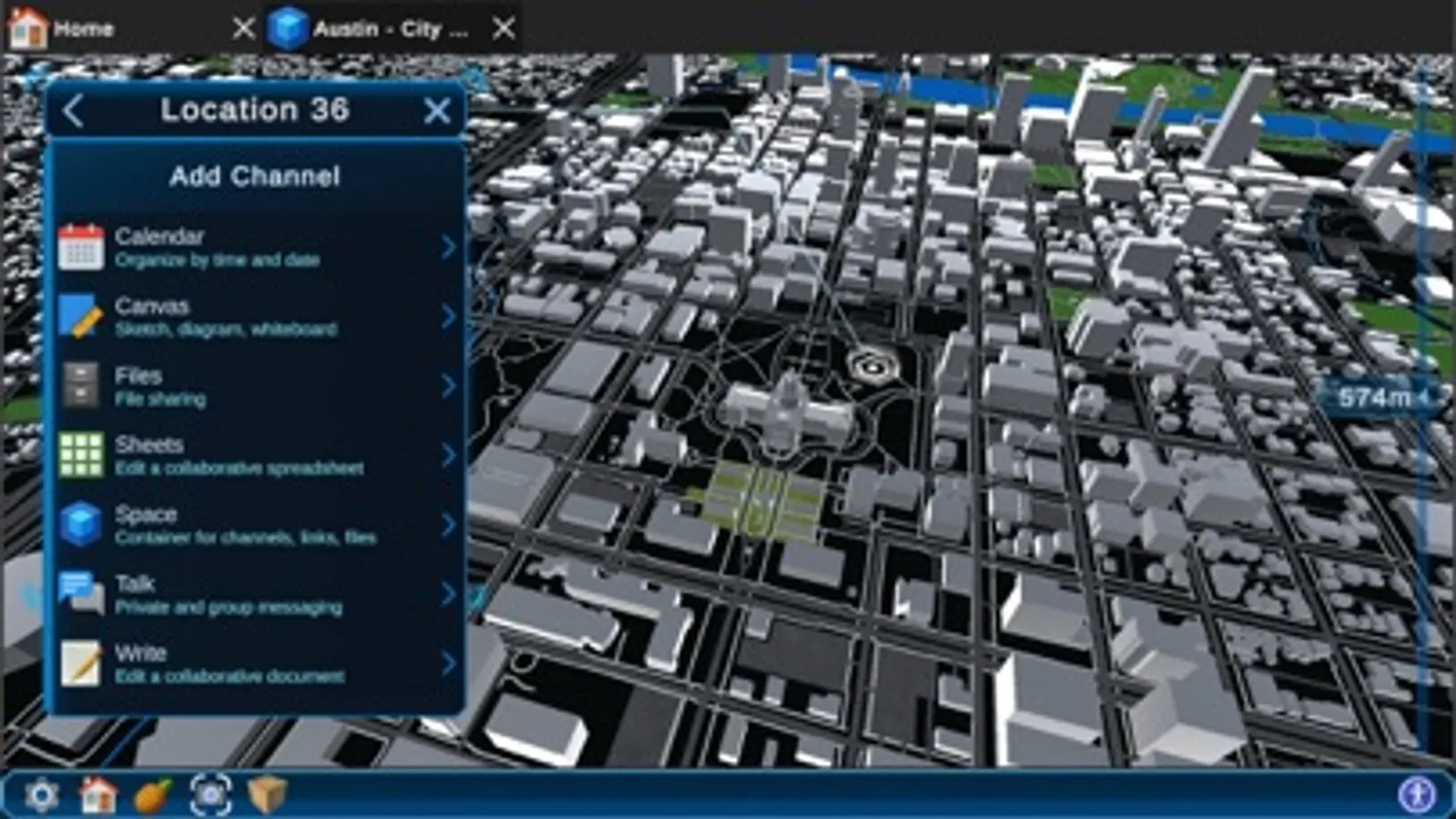 PLAN 3D is being developed by PLAN Systems for realtime collaboration and information exchange. It brings together immersive spaces, 3D models, information channels, and Web links & information. Build your own "metaverse"style information spaces. The default community is hosted by PLAN Systems and lets you access and explore all the 3D content, features, and current functionality of the native PLAN client interface.