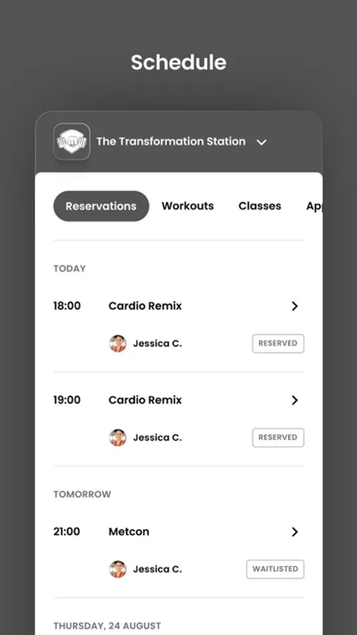 For members of The Transformation Station to reserve their place in a class, sign up for gym events, and general account management like updating headshots and credit card on file.