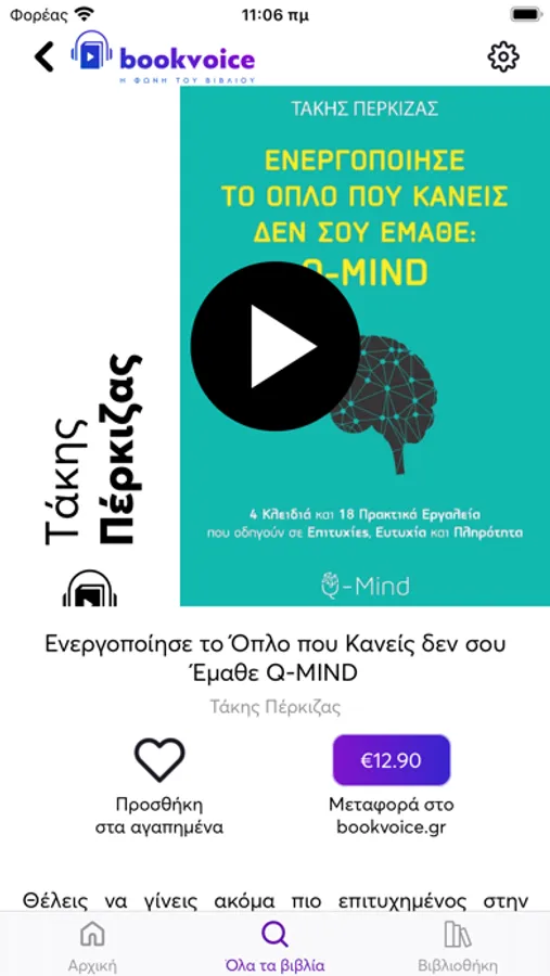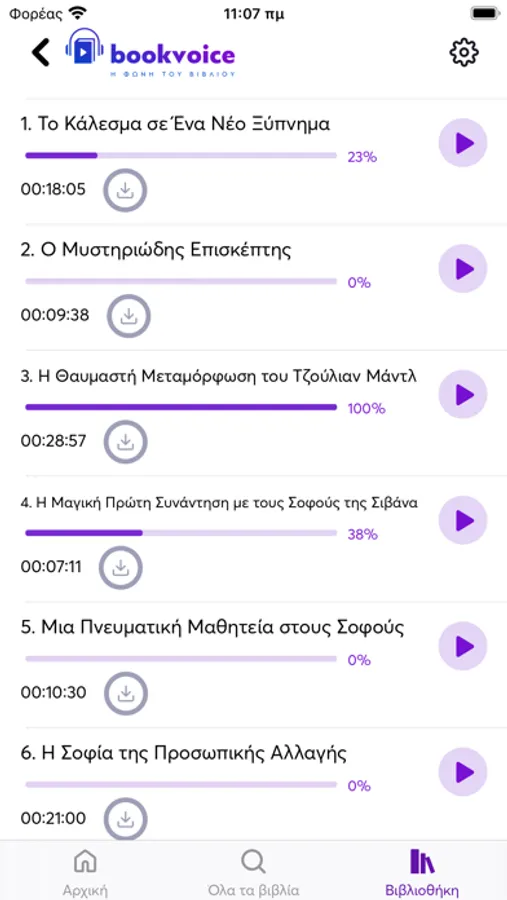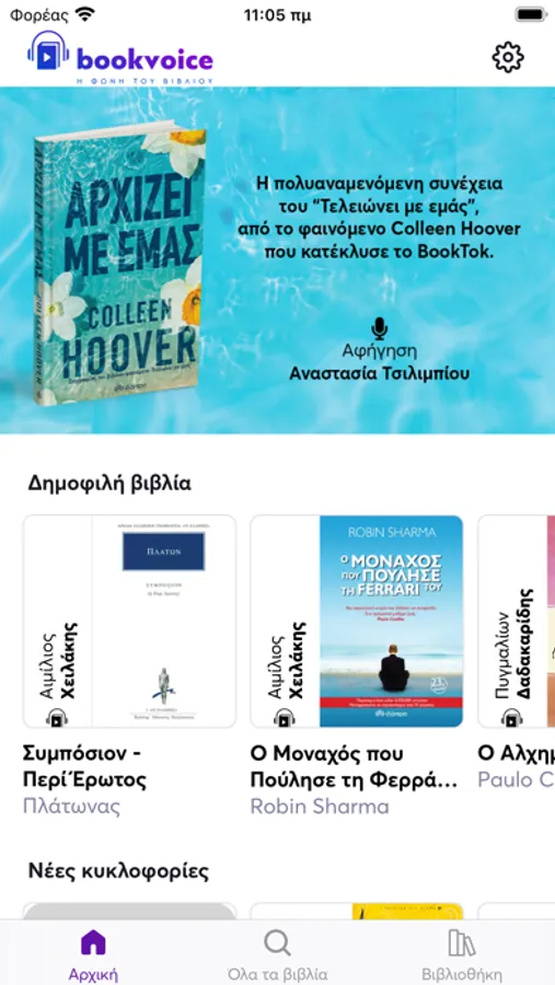 Our free Bookvoice.gr mobile application gives you access to a carefully selected collection of books that you can hear when and where you want to. Visit bookvoice.gr to buy your favorite book and listen to it on your device.