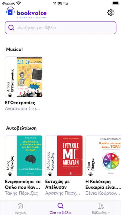 Visit bookvoice.gr and see all available audiobooks. If you need help, get in touch with us on info@bookvoice.gr and our facebook page @Bookvoice.gr