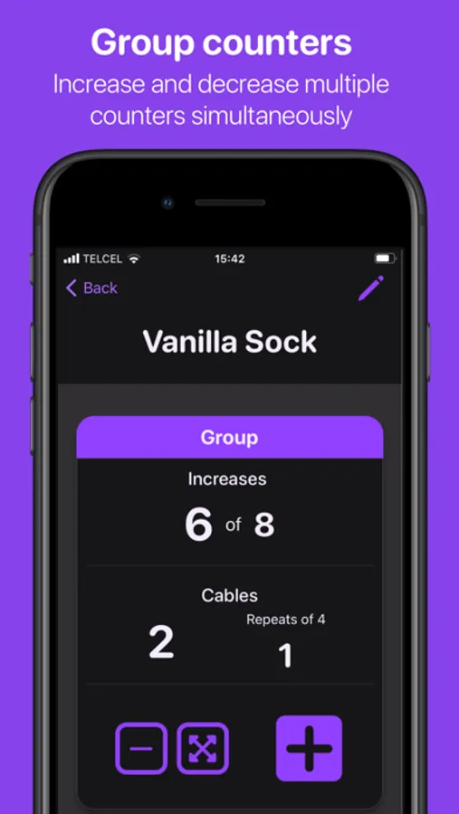 A row counter for crochet and knitting projects. Whether you have a complex pattern that needs to keep track of multiple counters, or you just need to count to ten, Alicia's Row Counter's got your back!