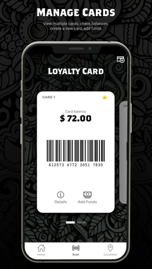 Merge your current physical card or start a new one. A physical card is no longer needed. Simply scan your smartphone to pay for your purchase & tip your barista.