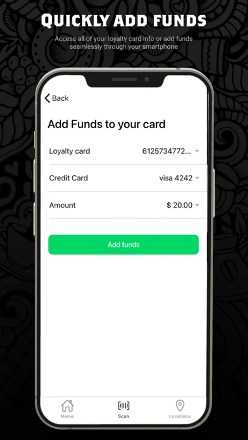 Loading funds is easy, select any denomination and simply click ‘add’! A more streamlined way to earn points and add funds, no more swiping.