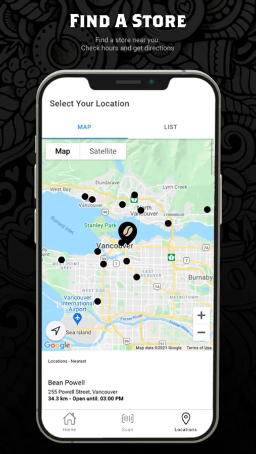 Want to find your nearest store location? Tap on the location finder to find the Bean nearest to you, operation hours, and even get directions!