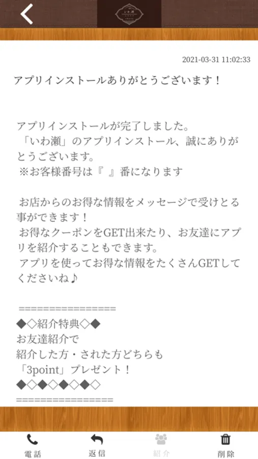 いわ瀬のアプリをSNSを通じてお友達に紹介する事ができます。