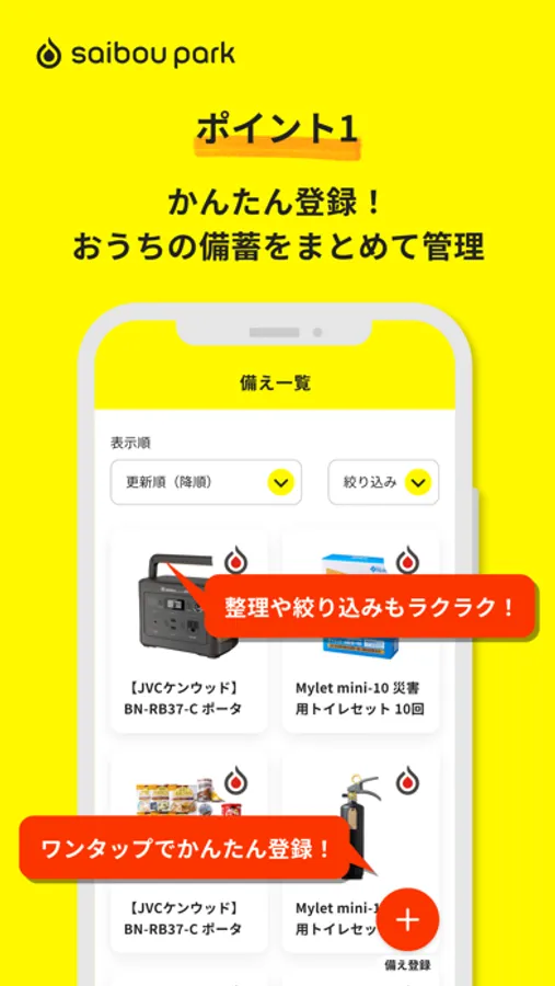 防災用品のセレクトショップ「SAIBOU PARK(サイボウパーク)」から、防災備蓄まとめて管理アプリが誕生しました!