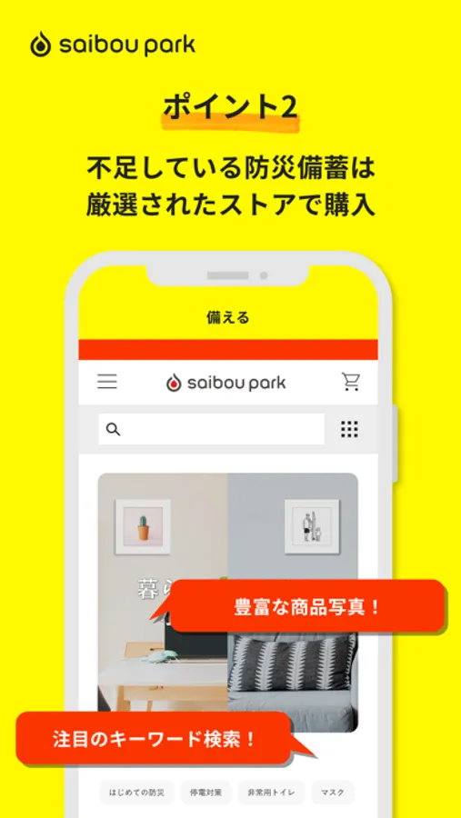 足りないアイテムは、豊富な商品を取り揃える防災用品のセレクトショップ「SAIBOU PARK」からお求めいただけます。