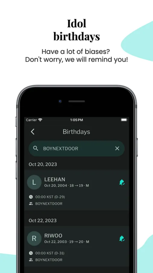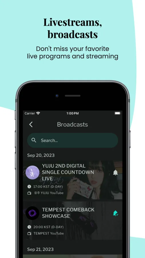 - Set reminders and receive notifications for upcoming K-pop events