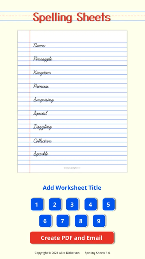 Spelling Sheets 1.0 was developed to make it effortless for parents and teachers to create simple, effective worksheets to help students sharpen their spelling skills. This app is easy to use, and allows the creation of customized worksheets that are turned into a PDF and can be used anywhere.