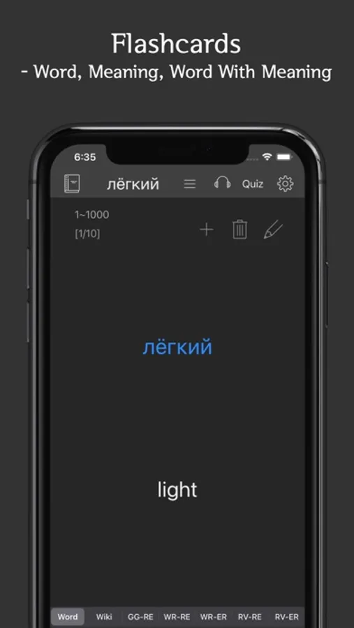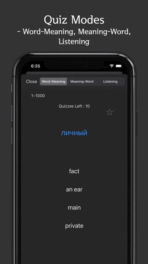 - comfortable dark mode, quiz-modes, push alarm at time user sets