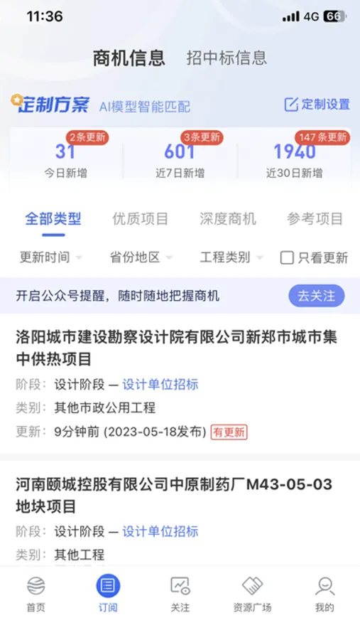 【信息推送 精准及时】采用“定制+推荐”方式,精准实时推送招标采购信息,节省寻找商机的时间。