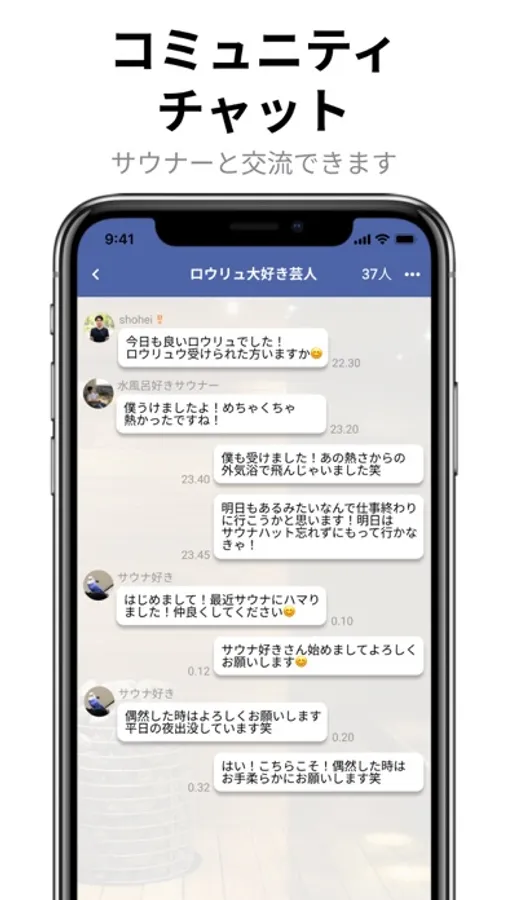 ■ コミュニティチャットでサウナーとのリアルタイムな交流が可能に!サフレが見つかるかも!?