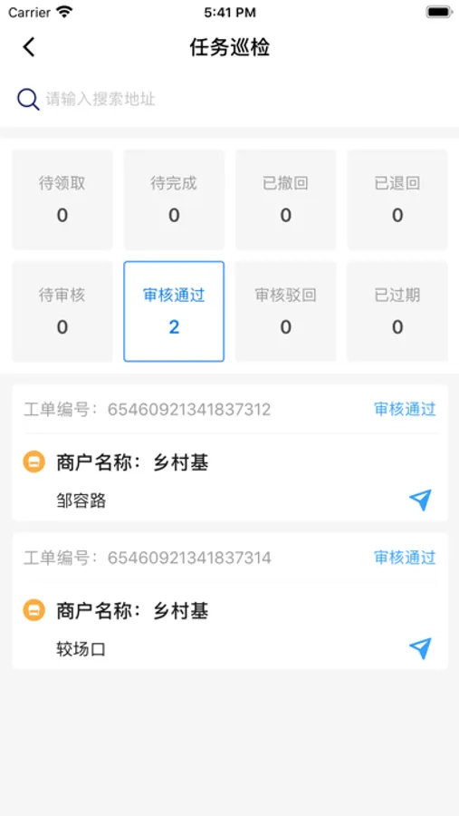 巡检人员可通过采集商户地址、商户业态、受理类型等信息完成巡检项目及巡检工单,有效帮助企业管理者解决商户巡检上的困难,构建一体化智能巡检工具。