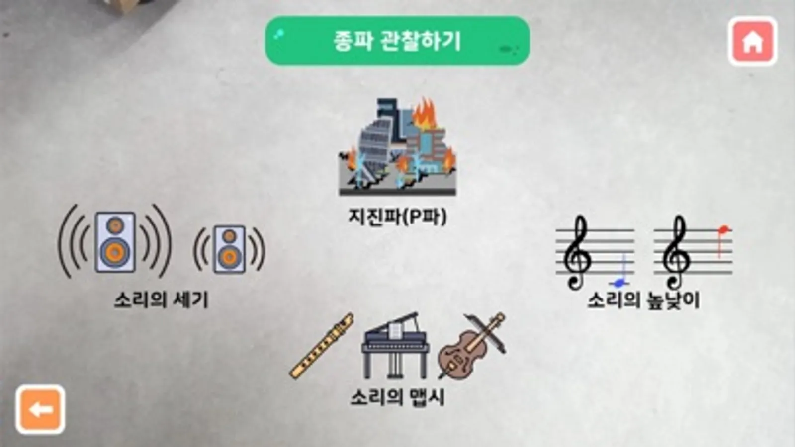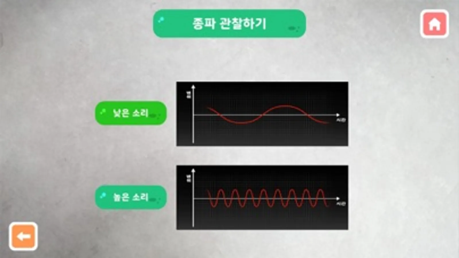 'AR_파동 파헤치기'는 파동의 종류를 횡파와 종파로 구분하고, 소리의 특징을 진폭, 진동수, 파형으로 설명하는 어플입니다.