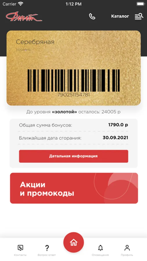 Добавляйте свою электронную бонусную карту в приложение. Теперь ваша карта магазина «Фанат» будет всегда под рукой.
