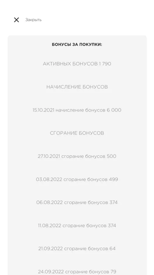 Отслеживайте количество бонусов на карте — начисленных и планируемых к начислению, а также подарочных. Бонусы отображаются со сроком действия.