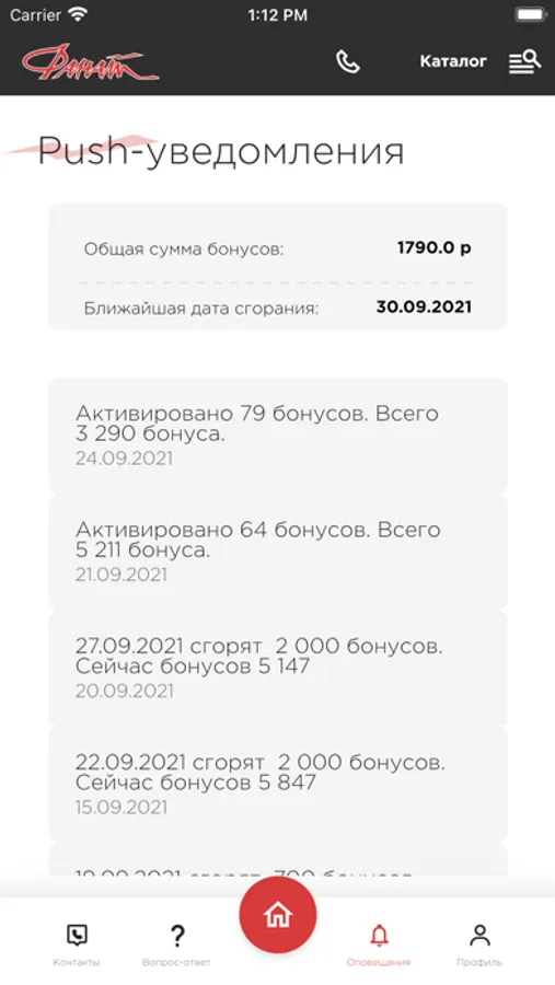 Получайте push-уведомления о начисленных бонусах и другую полезную информацию прямо на свой смартфон. В приложении отображаются ваши активные промокоды, по которым можно купить товар со скидкой.