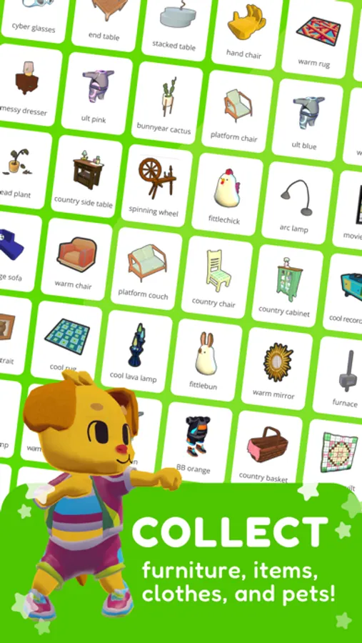 -Furniture! Accessories! Outfits! Characters! Pets! There are so many cool things to collect!