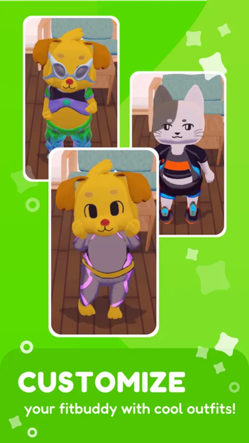 Exercise alongside cute Fitbuddies to earn coins and collect rewards to decorate your virtual house!