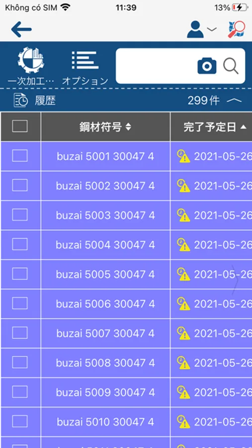 工程計画の一覧は工程セクションと作業予定日ごとに分かり易く表示され、各材料の詳細情報も閲覧することが可能です。