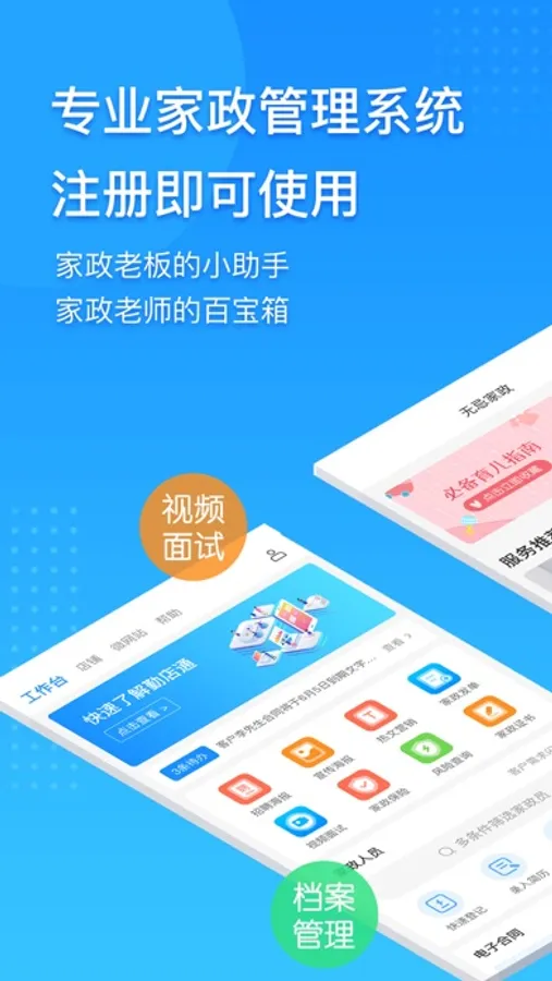 勤店通,是一套专业的家政管理SaaS系统!免费注册即可使用。店铺管理、服务员管理、客户管理、订单管理、家政合单、购买保险、报考证书,专属定制的家政百宝箱,功能强大、简单易用。满足各类家政企业需求,为家政企业数字化经营提供全场景、一站式的系统解决方案!
