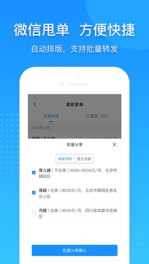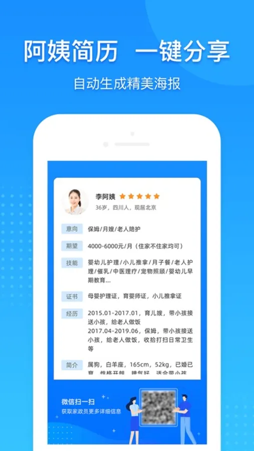 • 客户需求匹配,根据各种条件快速搜索阿姨。签单老师更轻松,客户更满意。