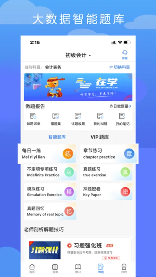 在学网校是综合性大型互联网职业教育平台,专注于互联网在线职业教育与职业提升,提供职业考试类、学历类、职业技能类等在线录播课程,在线直播课程,在线智能题库,社区答疑等服务。将直播融入培训体系中的互联网职业教育企业,且通过人工智能技术,结合后台大数据,为学员反复推荐疑难知识点并建立个性化学习档案,自主研发了主打直播与录播的“云在学”、负责社区答疑的“在线帮”、以及智能化学习的“云题库”。
