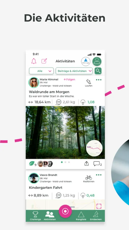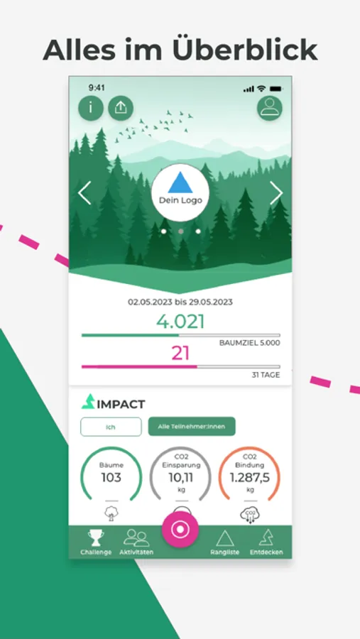 Legt eure Kilometer pro Baum fest. Für das Laufen, Fahrradfahren und Wandern/Spazieren.
