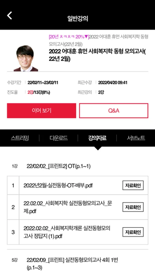 - 강의 다운로드 진행상황을 확인할 수 있고,