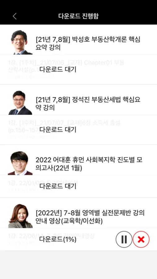 - 다운로드 중인 강의 일시정지 및 삭제, 재 다운로드가 가능합니다.