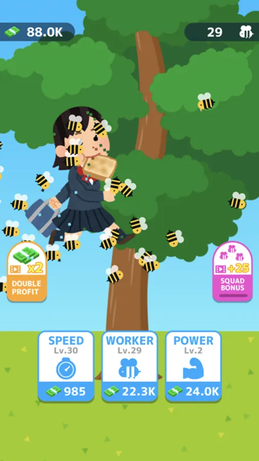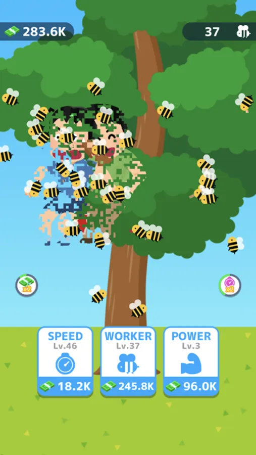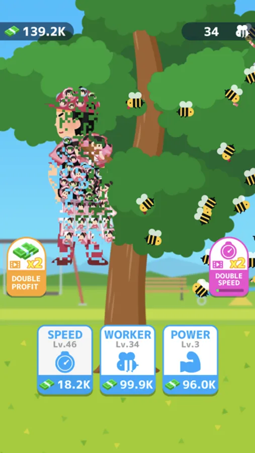 You will need to "harvest" enough cash to upgrade your "workers" in quantity, speed, and power.
