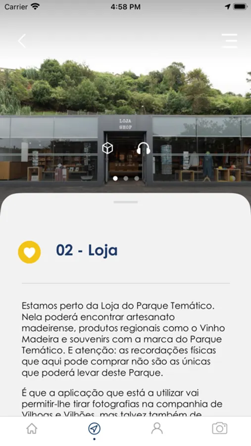 A App do Parque Temático da Madeira leva-o numa viagem pela ilha da Madeira. Usando o seu dispositivo móvel poderá aceder à informação dos vários pontos de interesse do parque, automaticamente despoletados por GPS. A aplicação tem diversos conteúdos, mas destacamos a possibilidade de ver animações em realidade aumentada, como ver o Winston Churchil a falar sobre a sua estadia na Madeira, ou tirar uma foto com o avatar virtual do parque, que o guiará ao longo da visita. Embarque numa experiência única, com os mais diversos conteúdos, e venha conhecer a pérola do atlântico.