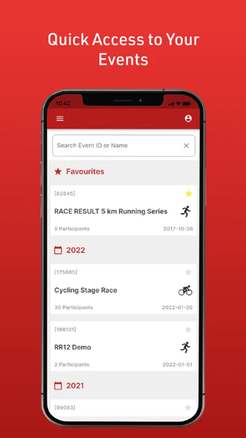 You can also get quick access to your RACE RESULT 12 events, made even easier with quick login using your device security.