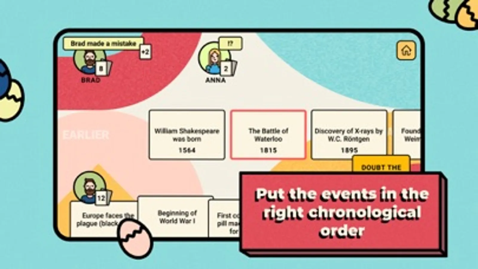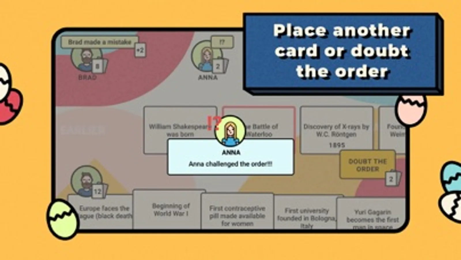 The varied combination of bluffing, knowledge and guessing sets Line Up apart from other quiz games. In case you are not able to estimate one of the facts, you still have the possibility to convince your fellow players that you know exactly what you are doing. Because only those who are doubted run the risk of losing the round in Line Up