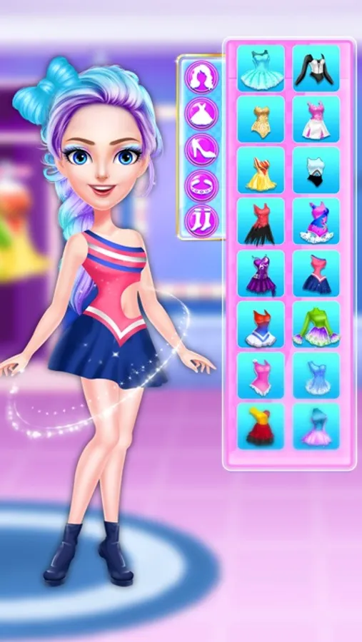 Super cool levels to play like Dress Up, Make up, Warm Up Exercises, Training and Competition level. Can you be the winner?