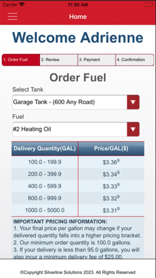 of your finger. Don’t pay extra for automatic delivery overhead, manage your own deliveries. You choose how much to be delivered, the more you order the more you save. Use the 1-click repeat order function for your convenience too! Order a specific number of gallons or order a fill and you will be charged based on your tank size and right after delivery your card will be credited back for any gallons that did not fit in your tank! It’s heating oil made easy, at your convenience.