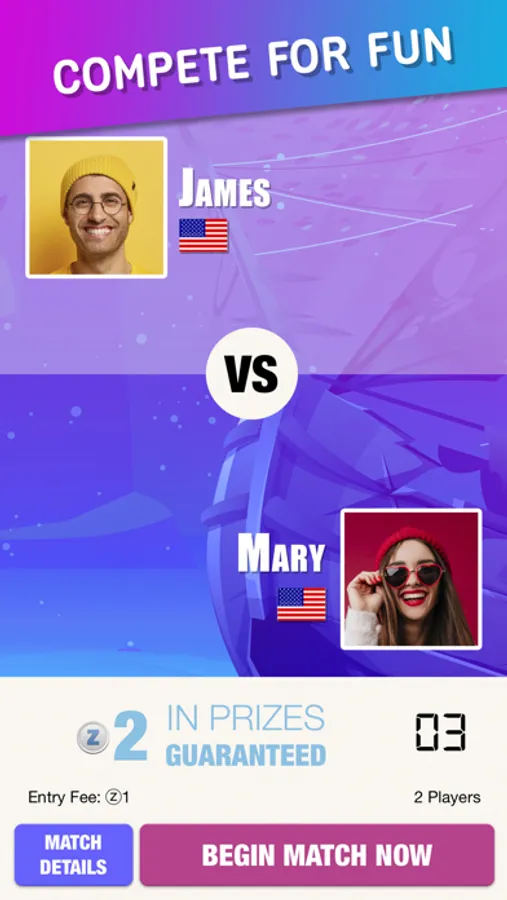 Play for fun! Dive into tournaments and face to face competitions with real players for virtual game currency. Test your speed and concentration skills playing against people from all over the world.