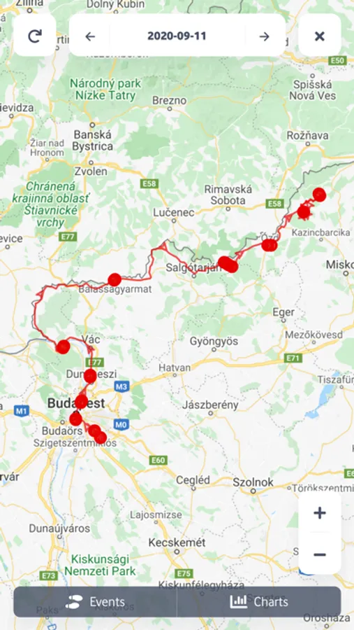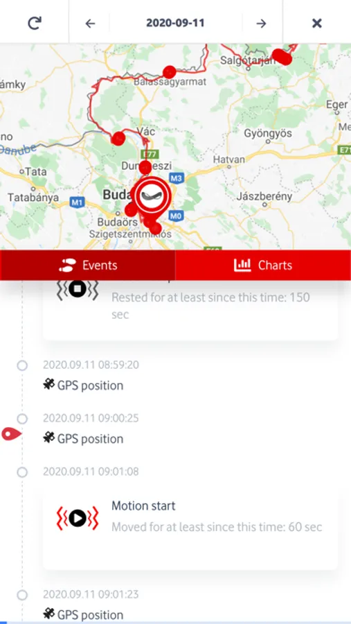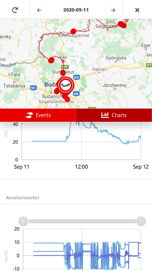 Track the latest location information of the devices, and check the previous routes organized by date. The listed events and sensor measurements can be also shown in the application.