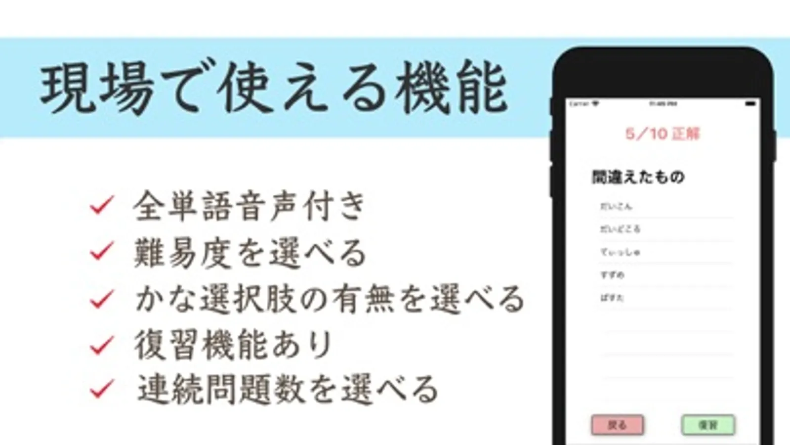 ・誤ったものだけを正解するまで繰り返すことが可能