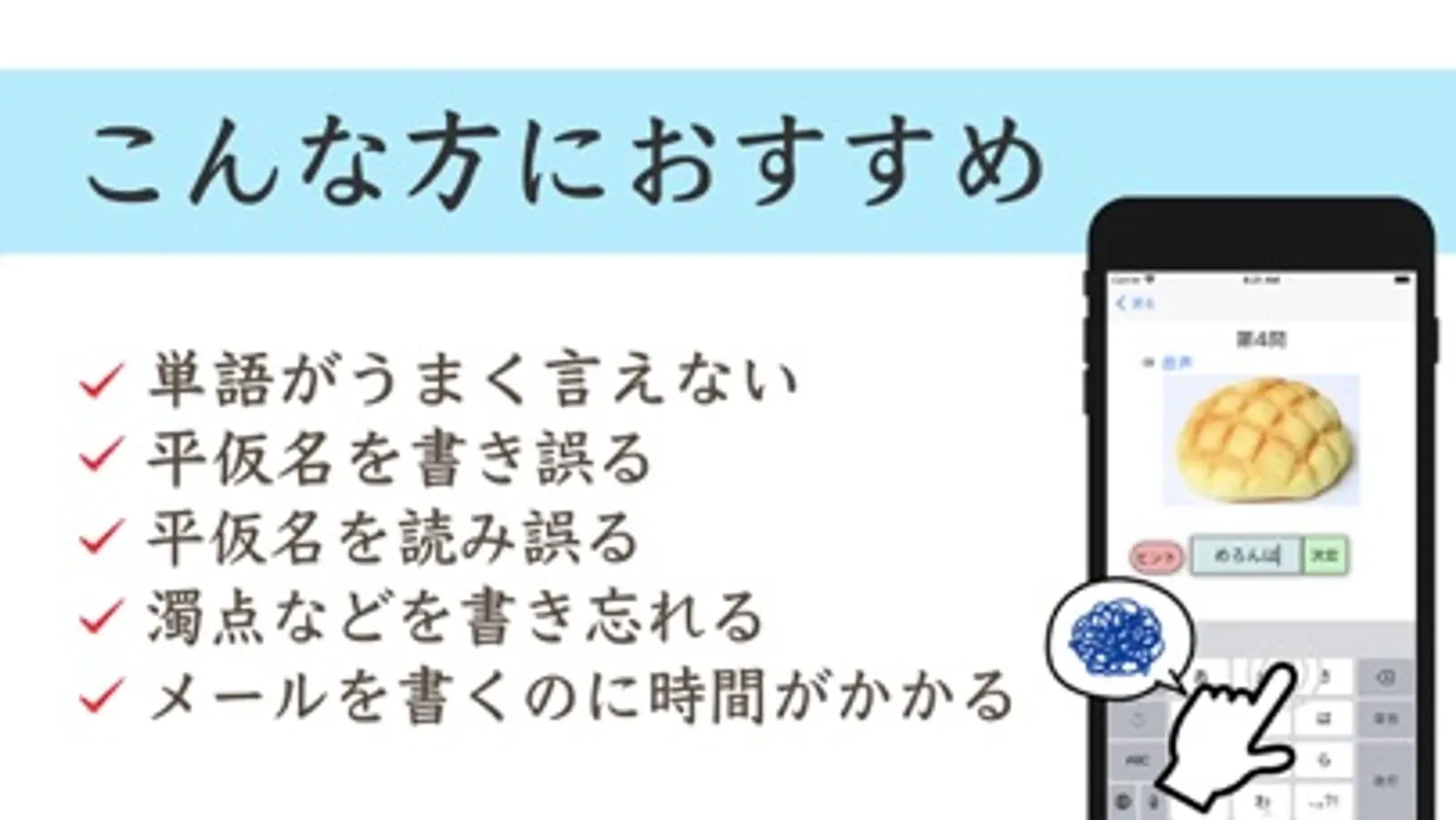 メールが打てない方や仮名を書き誤る方のリハビリに使用できます。