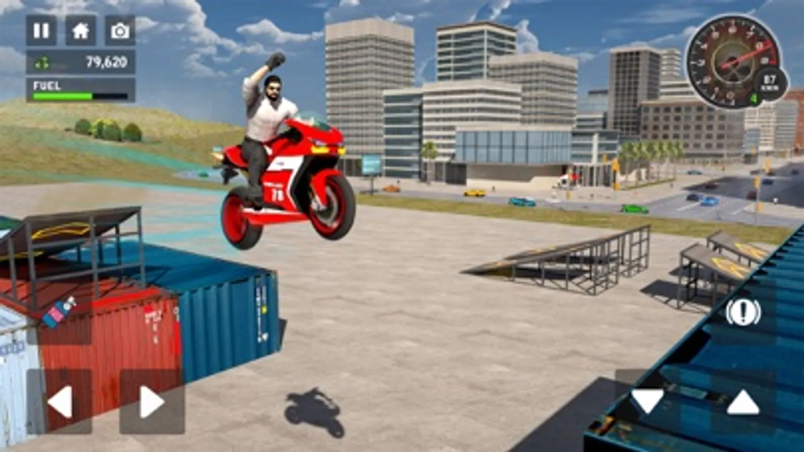 In this latest Motorbike Simulator, you will be taken to an unknown City for epic missions. You will have to find secret points; each point will launch an epic mission for you. The missions include collecting points, perform stunts, following cars, chasing thieves and racing against the time.