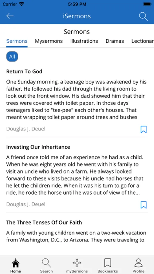 3) Bookmarks allows you to mark your favorite material, so you don't have to remember where you saw that great sermon, illustration or commentary.