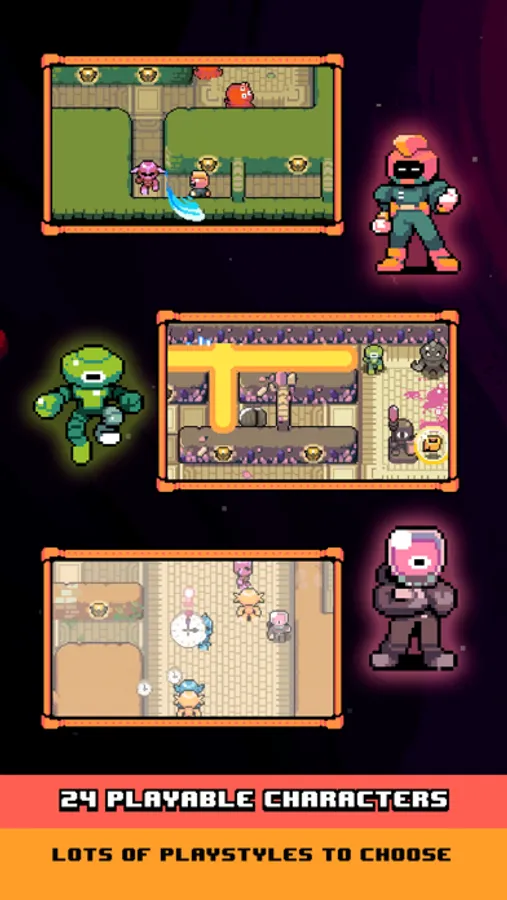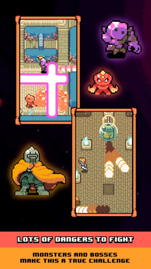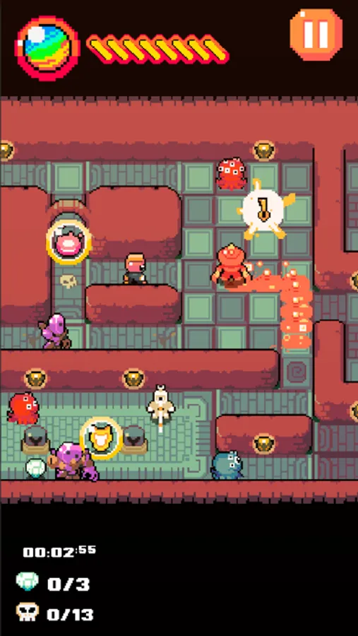 Lots of unlockables, monsters, levels, power-ups and collectibles await you in this beautiful endless stream of pixel art mazes filled with some awesome arcade vibes!