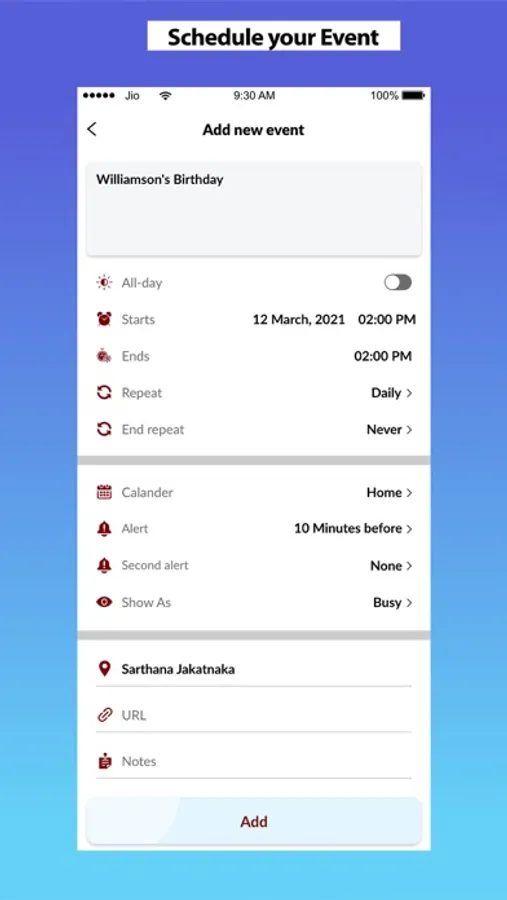 Create unlimited list of events.