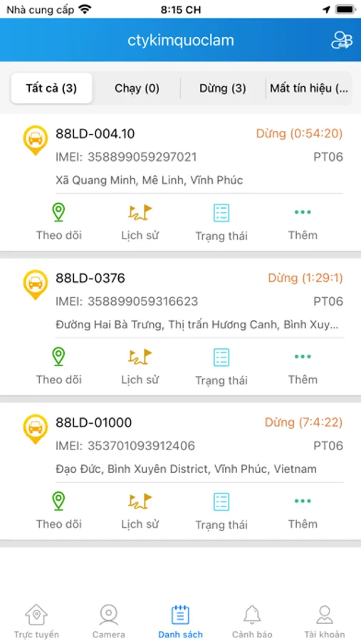 - Nhận cảnh báo từ thiết bị (ra vào vùng giám sát, thiết bị rung, nguồn tắt/bật....)